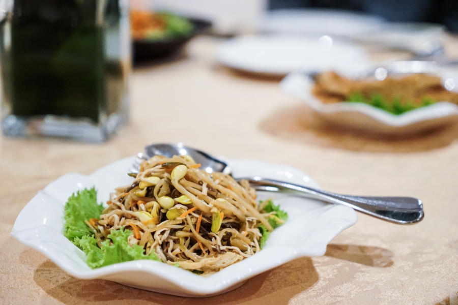 復刻宣一宴裡還有其他費工耗時的手路菜,譬如得手工炒製3小時紅豆沙的豆沙芋泥、考驗切絲刀工的如意菜、層層堆疊豆皮的素雞等等,江浙飲食因富裕久遠而不舖張的文化深度,盡在其中。紅燒牛肉、炒紅豆沙也因為得長時間看顧著,輪班稍有閃失就砸鍋,主廚宗哥親自坐鎮,大廚都不大廚了呀。