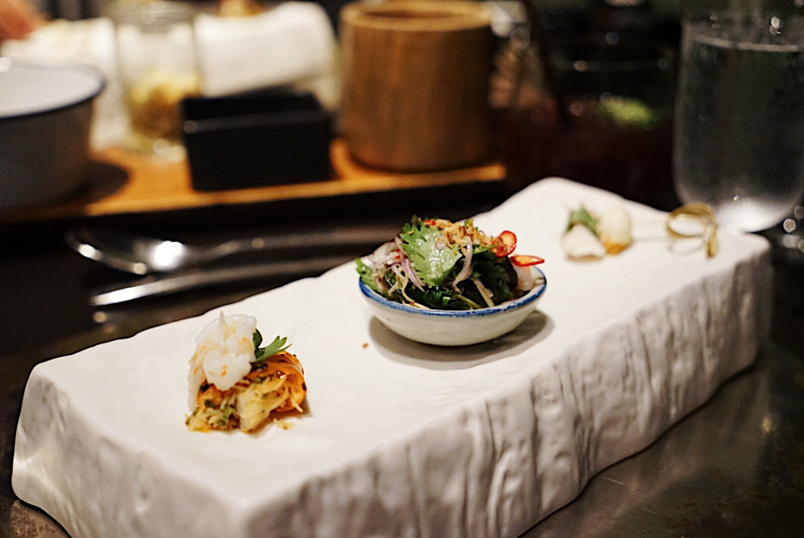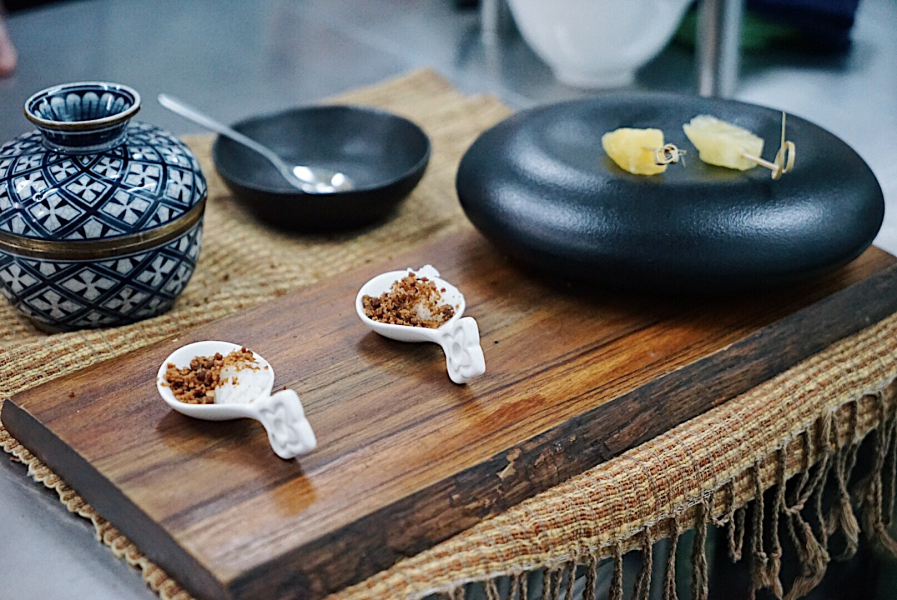 Le Du的Chef Ton履歷堅強,從美國的CIA畢業後,待過Eleven Madison Park、The Modern、Jean Georges等紐約名所,手筆自然脫不了fine dining。他以現代法菜的手法呈現泰國菜,擺盤頗有Eleven Madison Park的極簡風格,味道則是泰味十足,譬如一道Khao-Chae的豬肉球及茉莉香米冰淇淋,甜點裡出現的煙燻椰子冰淇淋,都很討喜。