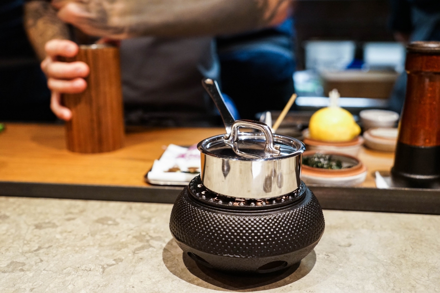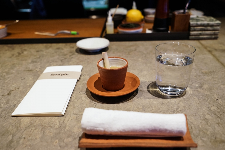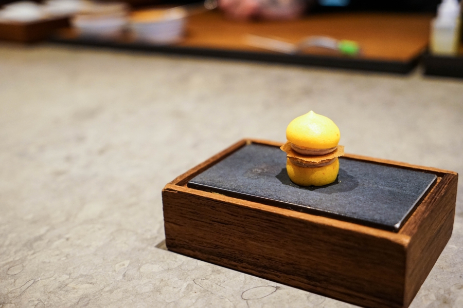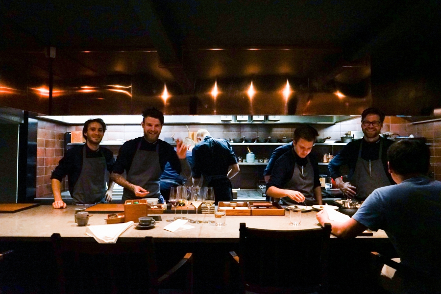 我被安排坐在出餐檯前,這是最佳的單人用餐座位,因為整頓晚餐就像一場讓人目不暇給的大秀,即便我一個人也沒有時間無聊;在我面前的廚師們則直接為我上菜、服務,我也因此能與他們聊天。只可惜Bjorn Frantzén 本人當天不站出餐檯,不然就能一直拍他的特寫了(笑)。