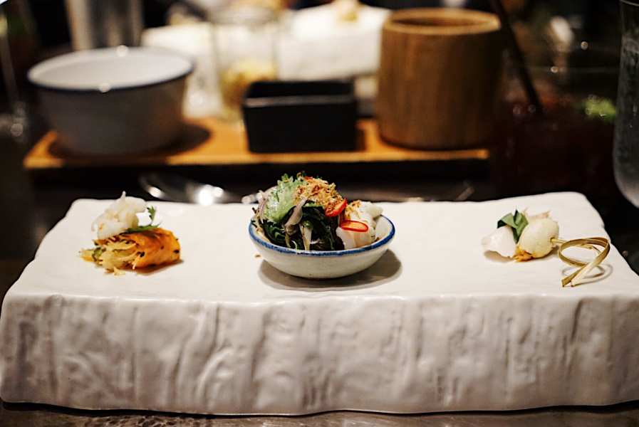 Le Du的Chef Ton履歷堅強,從美國的CIA畢業後,待過Eleven Madison Park、The Modern、Jean Georges等紐約名所,手筆自然脫不了fine dining。他以現代法菜的手法呈現泰國菜,擺盤頗有Eleven Madison Park的極簡風格,味道則是泰味十足,譬如一道Khao-Chae的豬肉球及茉莉香米冰淇淋,甜點裡出現的煙燻椰子冰淇淋,都很討喜。