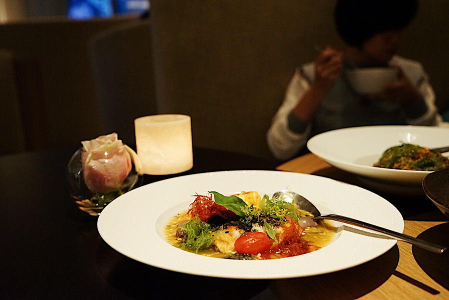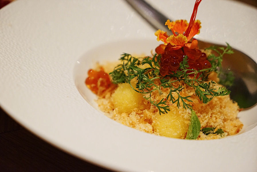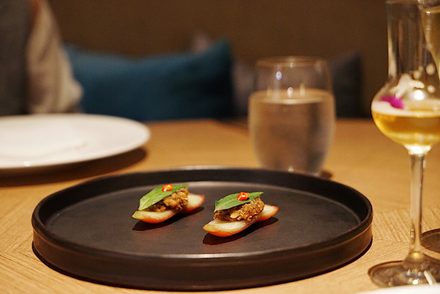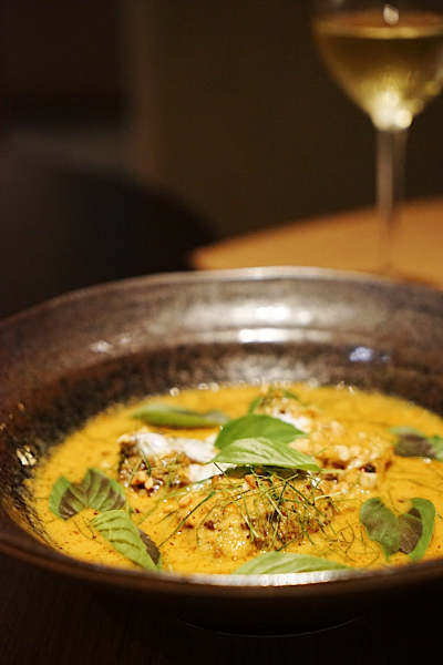 Le Du的Chef Ton履歷堅強,從美國的CIA畢業後,待過Eleven Madison Park、The Modern、Jean Georges等紐約名所,手筆自然脫不了fine dining。他以現代法菜的手法呈現泰國菜,擺盤頗有Eleven Madison Park的極簡風格,味道則是泰味十足,譬如一道Khao-Chae的豬肉球及茉莉香米冰淇淋,甜點裡出現的煙燻椰子冰淇淋,都很討喜。