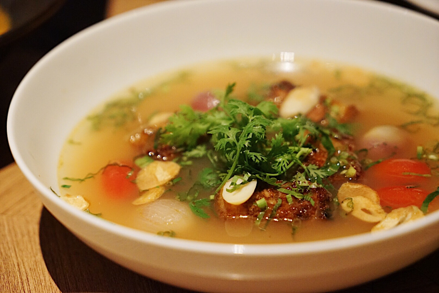 Bo.lan是Nahm的子弟兵,對於傳統菜同樣下足功夫,但有年輕氣盛的創意與野心。那晚的菜好辣!去年可沒這麼讓我的肚子翻攪,但去年的菜也比較平淡,今年則鮮明跌宕,好幾道菜都滋味出眾,譬如炒豬頸肉、船麵湯與小黃瓜河蝦沙拉,都讓我點頭叫好。