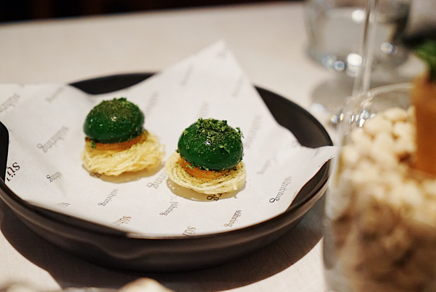 Sühring賣的是現代德國菜,由雙胞胎兄弟Thomas and Mathias Sühring執掌,三連霸亞洲第一的Gaggan Anand則是其中一位投資者。Sühring兄弟把肅穆平實的德國菜改造得輕盈精緻,香腸、啤酒、pretzel都被賦予新意,一道「德式野餐」尤其讓我印象深刻,陣仗宛如辦家家酒般可愛而華麗,麵包、奶油、肝醬、火腿等等的味道也很好。對我個人美中不足的地方在於,我不熟悉德國菜,這些改編觸動我的程度有限,但整體而言仍然是愉悅的。