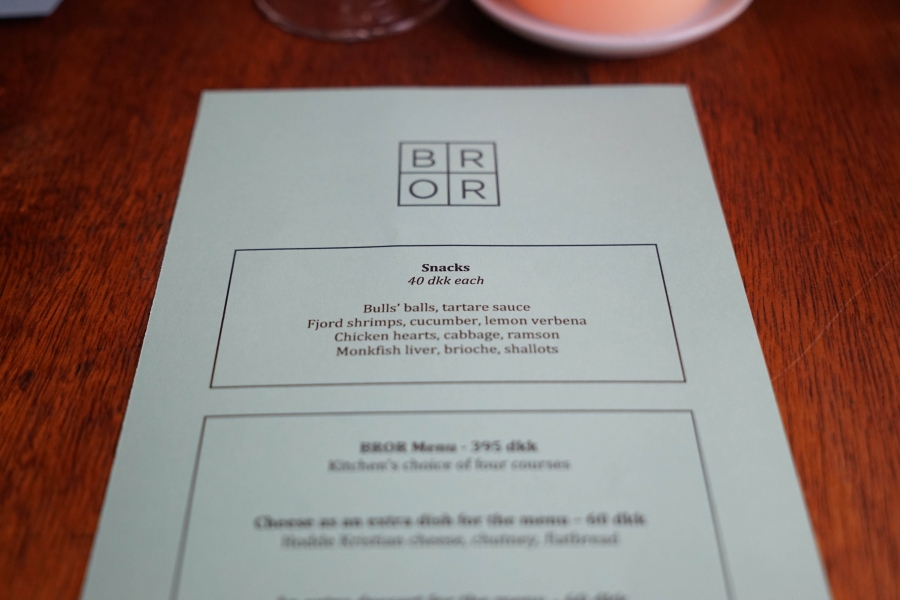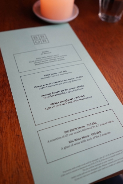 Bror在丹麥文中意指brother,這裡的雙主廚Victor Wågman及Sam Nutter也就像兄弟ㄧ般。他們二人都曾擔任Noma的副主廚,ㄧ同離開Noma後,在2013年3月開了Bror,迅速走紅,也往往被ㄧ些旅遊指南稱為「訂不到Noma的便宜替代方案」。但我認為把這裡稱作Noma的替代品並不合適也有失公允,因為Bror的料理與空間和Noma完全不同,不僅簡單直接,且輕鬆隨興許多,若在週末夜晚臨時起意想吃餐好料,這裡就很適合。