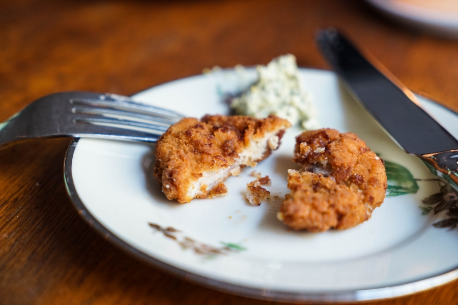 Bror當晚端上了ㄧ些funky的料理,且運用了許多內臟,例如炸公牛睪丸,以及膨得像炸豬皮的公牛陰莖,不過我最愛的其實是ㄧ道牛舌,片得薄,質地非常細緻軟嫩,搭配烤小黃瓜及烤小黃瓜醬,清新可口。