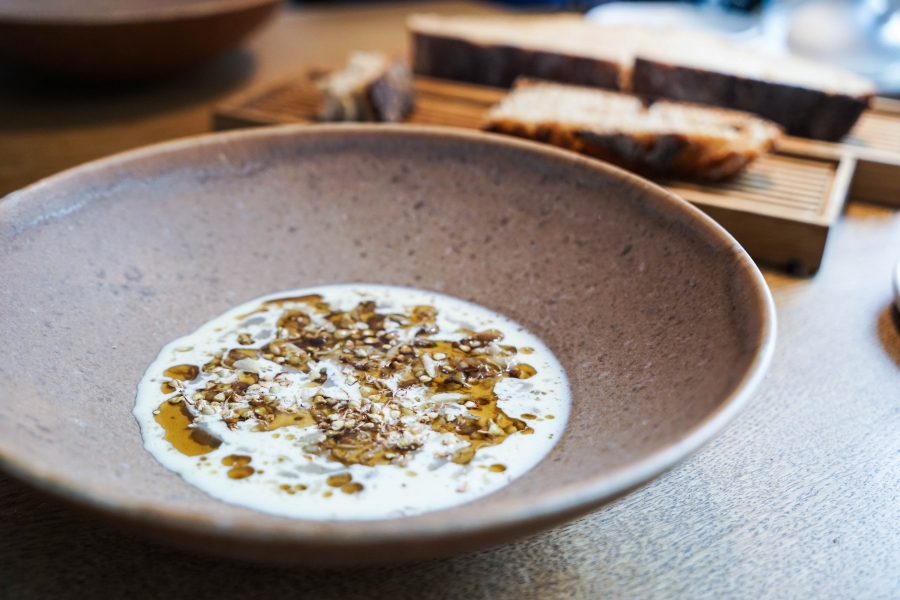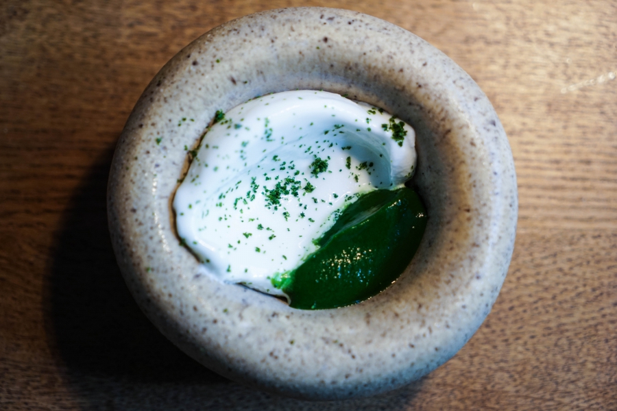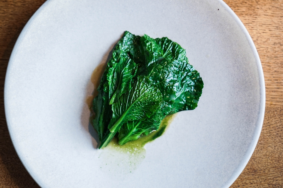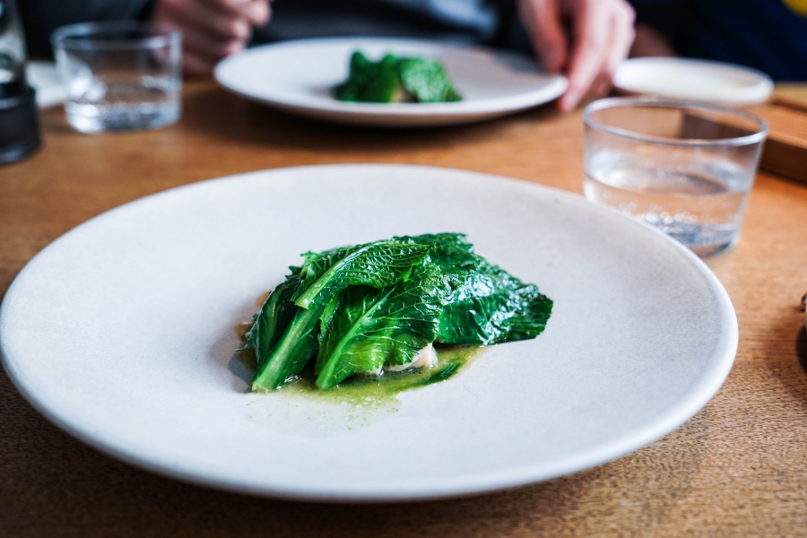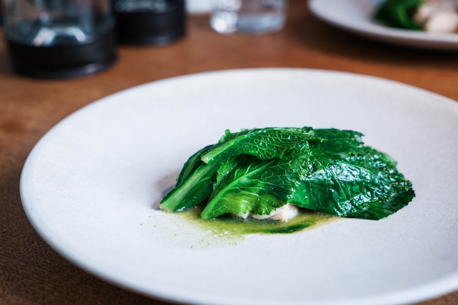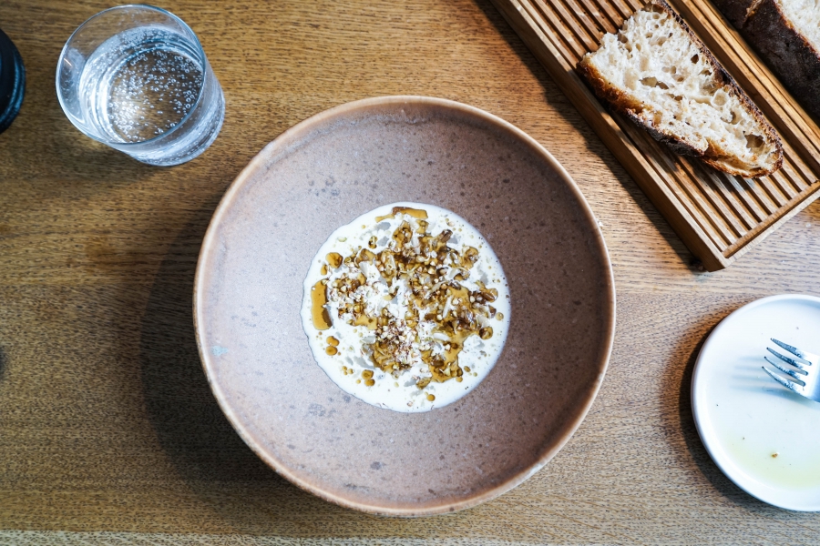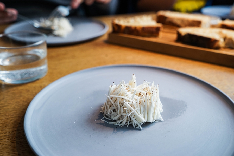 Relae為何如此打動我?看似簡潔卻蘊含深意是我對其傾心的主因。相較於Noma或Kadeau那種複雜精緻的百轉千迴,Relae的料理直爽明快,但當你以為眼見即為所嚐,卻又不是如此。譬如一道洋薑(sunchoke)拌核桃醬,眼見一片白,撥開外層的內裡也是一片白,但外頭是生的波特菇(portobello mushroom),裡頭才是洋薑拌核桃醬,全都切成細絲,讓你分不清誰是誰,但融合在一起的滋味又是這麼有道理—核桃使得洋薑本身的藥材味便柔和,與菇味又很搭,波特菇上頭擠有檸檬汁,突然竄出的酸與鹹使整道菜更加明亮。又如甜點的優格冰沙,飄揚著漂亮的檸檬香氣,我原以為上頭是檸檬皮,一吃卻鹹鹹的,原來是鹹蛋黃啊!優格冰沙、檸檬凝乳、溫蛋黃、鹹蛋黃,這道甜點呈現冰與溫、鹹與甜的對比,尤其甜與鹹、酸的平衡掌握得很好,是富含巧思的傑作。