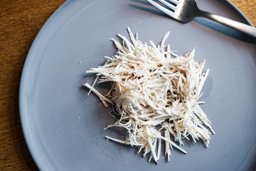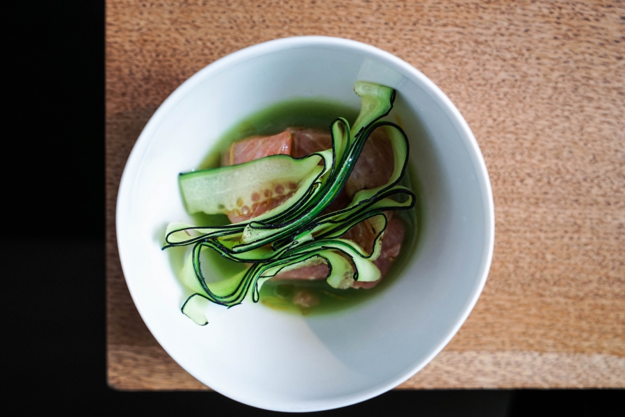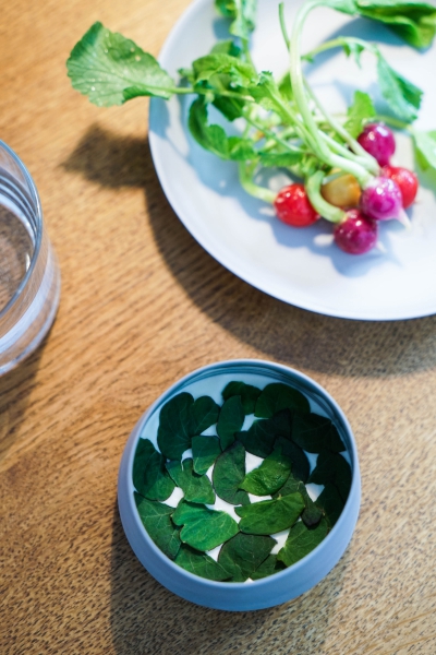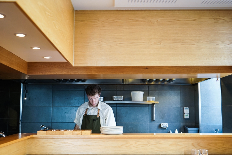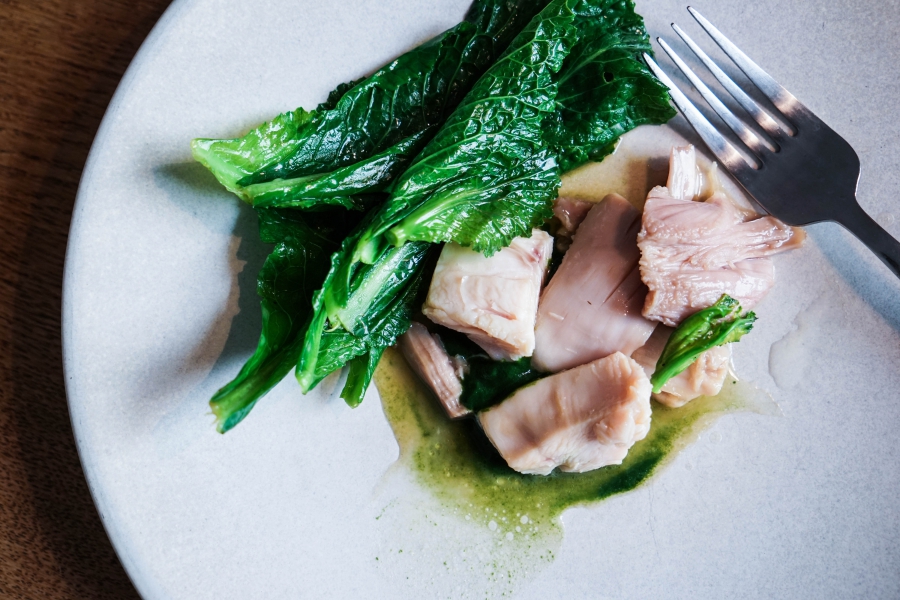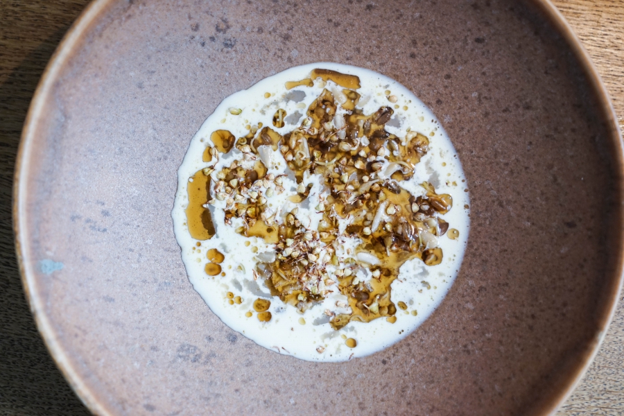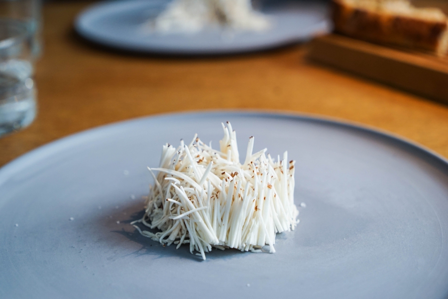 Relae為何如此打動我?看似簡潔卻蘊含深意是我對其傾心的主因。相較於Noma或Kadeau那種複雜精緻的百轉千迴,Relae的料理直爽明快,但當你以為眼見即為所嚐,卻又不是如此。譬如一道洋薑(sunchoke)拌核桃醬,眼見一片白,撥開外層的內裡也是一片白,但外頭是生的波特菇(portobello mushroom),裡頭才是洋薑拌核桃醬,全都切成細絲,讓你分不清誰是誰,但融合在一起的滋味又是這麼有道理—核桃使得洋薑本身的藥材味便柔和,與菇味又很搭,波特菇上頭擠有檸檬汁,突然竄出的酸與鹹使整道菜更加明亮。又如甜點的優格冰沙,飄揚著漂亮的檸檬香氣,我原以為上頭是檸檬皮,一吃卻鹹鹹的,原來是鹹蛋黃啊!優格冰沙、檸檬凝乳、溫蛋黃、鹹蛋黃,這道甜點呈現冰與溫、鹹與甜的對比,尤其甜與鹹、酸的平衡掌握得很好,是富含巧思的傑作。