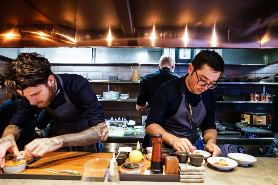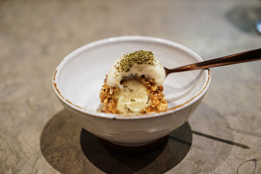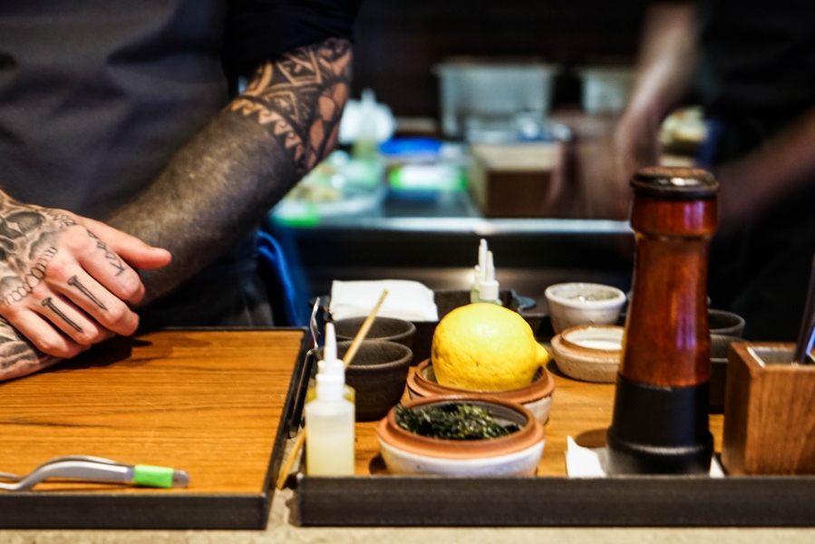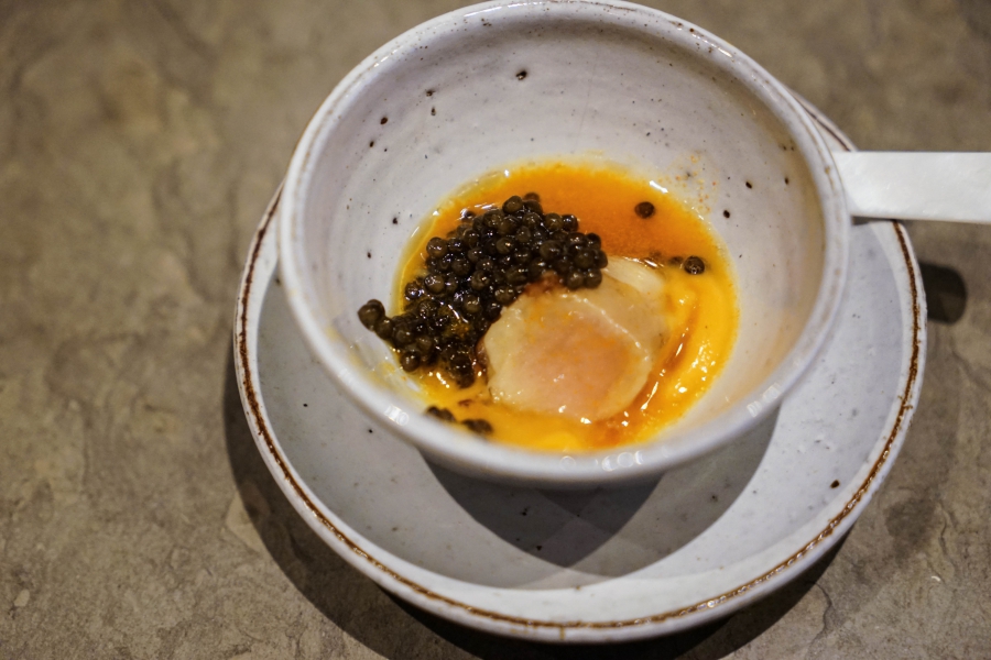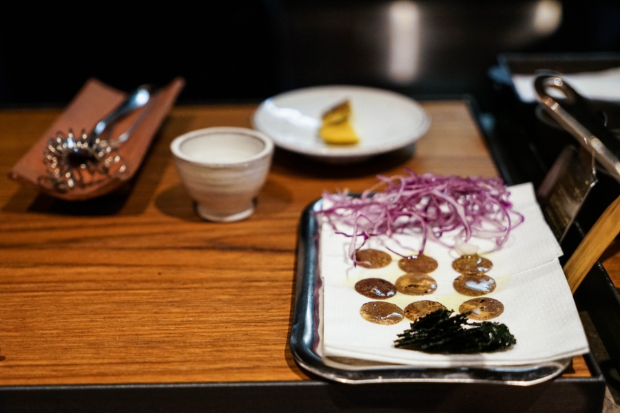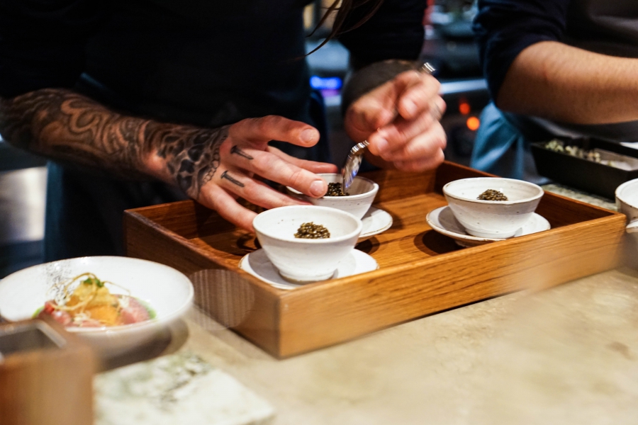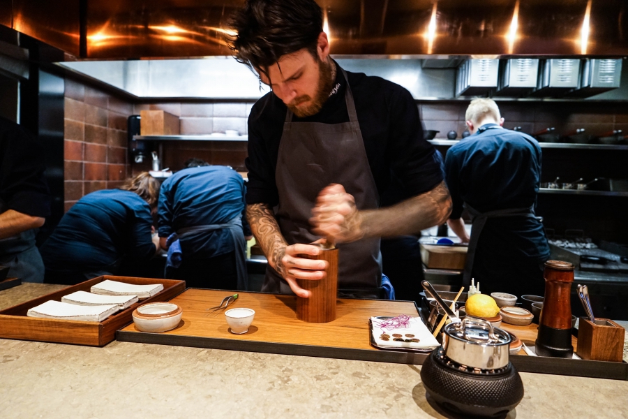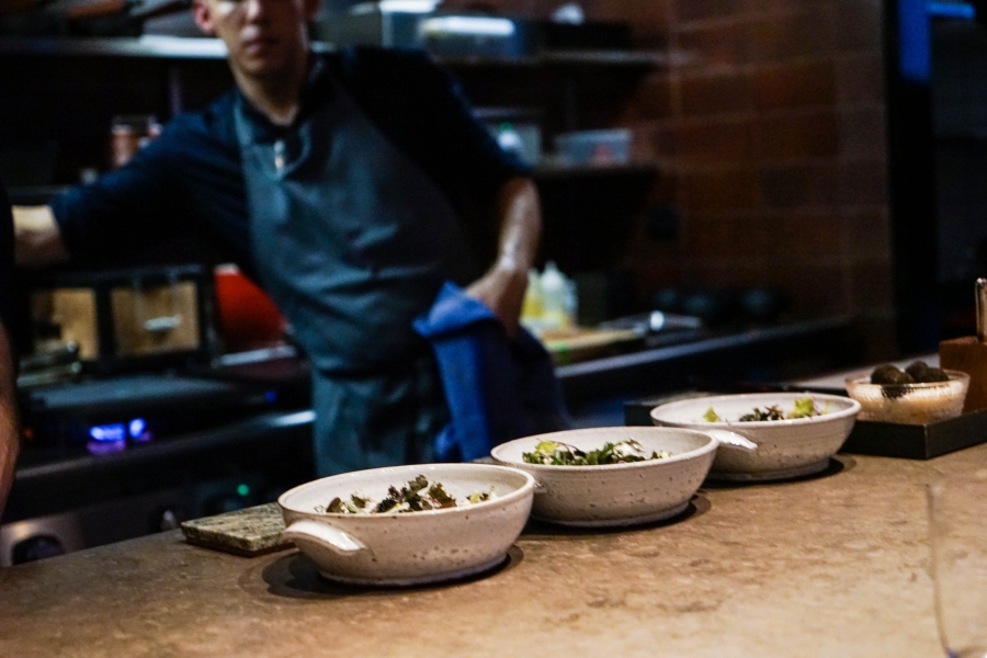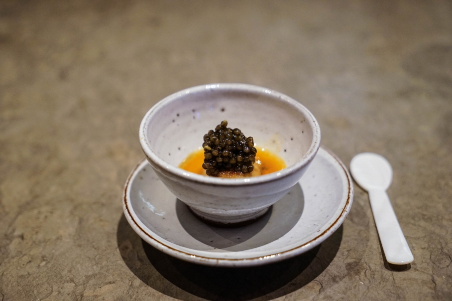 我被安排坐在出餐檯前,這是最佳的單人用餐座位,因為整頓晚餐就像一場讓人目不暇給的大秀,即便我一個人也沒有時間無聊;在我面前的廚師們則直接為我上菜、服務,我也因此能與他們聊天。只可惜Bjorn Frantzén 本人當天不站出餐檯,不然就能一直拍他的特寫了(笑)。