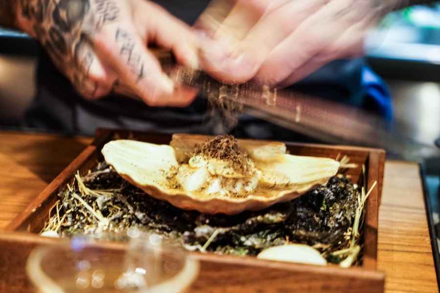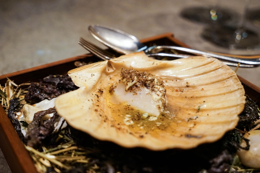 Restaurant Frantzén 的一道名菜是扇貝。將挪威來的新鮮扇貝直接拿去烤,取其原汁後,再將扇貝肉切片放回殼中,與奶油一起烤,上桌時,加入扇貝原汁、蛋黃醬,並刨上松露,即完成。扇貝仍未熟透,質地細嫩柔軟,富含鮮活風味,松露香氣倒沒有想像中強。吃完扇貝後,廚師會再於貝殼中注入高湯,由新鮮扇貝、乾燥扇貝、瑞典海藻及魚卵所熬成,味道濃醇而洋溢著煙燻風味,是漂亮的結尾。