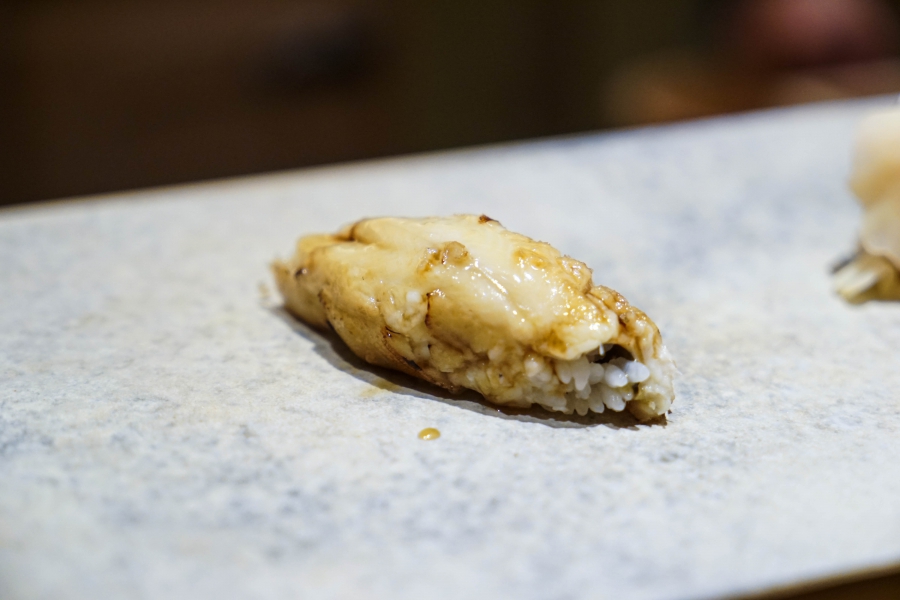 據說,齋藤師傅認為技術足以彌補品質,因此他不迷信頂級魚貨,而希望以其技藝提供物超所值的壽司。不過,不知是否我期待太高,把齋藤壽司想得太神聖了,這餐固然美味,但未令我感到特別驚艷,尤其一與隔日的次郎壽司相比。不過,齋藤師傅的年紀只有小野爺爺的一半不到哪,我這樣比較也太不公允,相信他會持續精進,也希望我能持續品嚐他手藝的變化。