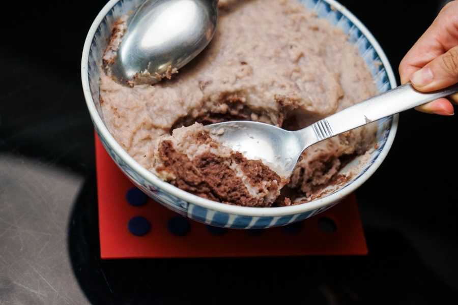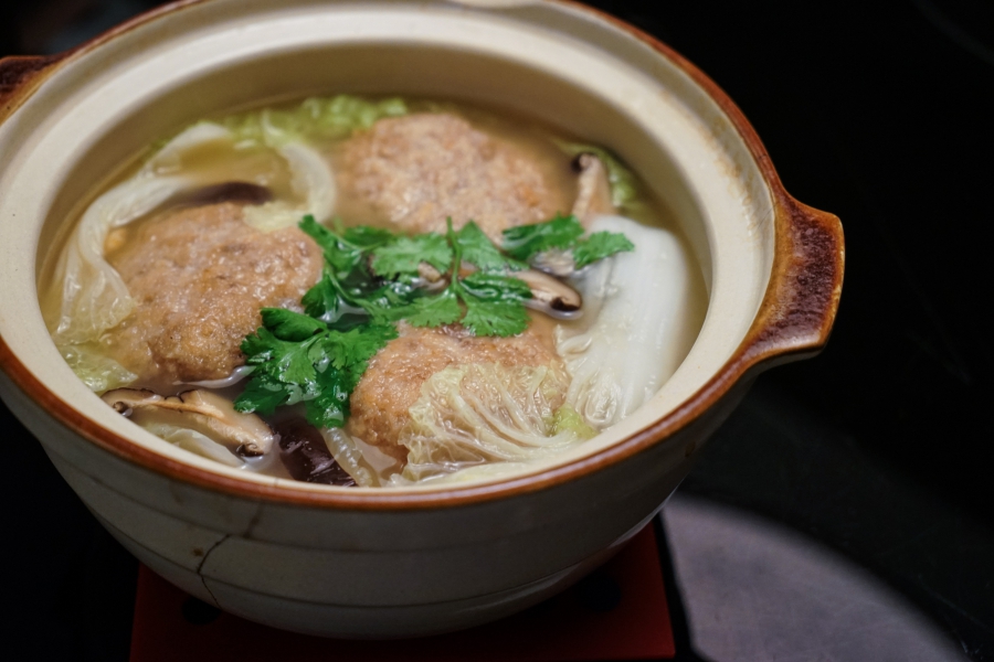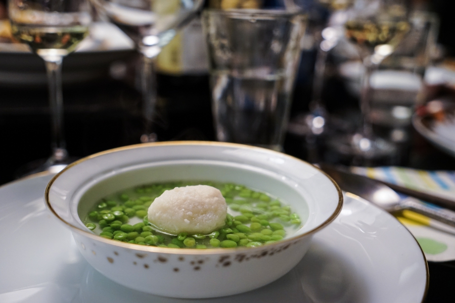 「宣一的菜」是今晚的重頭戲。青豆魚圓用白水煮出了豌豆仁的清甜,不用高湯,我吃了一驚;海參燴蹄筋彈跳舌間,花菇與干貝烹出鮮味,整體滋味則清淺淡雅;白菜獅子頭,那混合豬絞肉、雞里肌、魚漿的大肉丸,又軟又鬆還帶點黏性,口感十分好;豆沙芋泥,詹宏志親自花四小時炒豆沙,以花生油替代豬油,香氣撲鼻出眾。