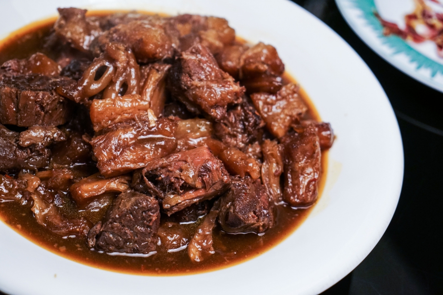 我沒吃過王宣一的紅燒牛肉,詹宏志做的就夠好吃了!鮮明的鹹味長驅直入,配飯剛好,尤其是蓋上現煎滑蛋的蛋包飯;多澆一點汁在飯上,黏嘴的膠質纏綿悱惻,牛肉一咬即斷,牛筋軟Q滑口,二者都入味得深。味道像不像?也許沒那麼重要。