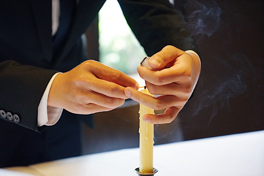 正當我以為Jimmy變不出花樣了,他與Max二人開始鬼鬼祟祟地搬弄桌上的蠟燭。這支蠟燭從我們開始用餐就在桌上,與餐桌設置及周遭環境不太搭,詭異得很,而且,燒得也太快了吧!Max用噴槍猛力燒它,頓時脂溶油解,水汪汪一攤,Jimmy再淋上某種深褐色的液體,彷彿在調味一般。
