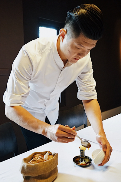 或許是基因註定,Jimmy從小就會做菜,雖然一度想當籃球員,但受傷後他就選擇廚藝之路。他回憶十八歲時,跟著朋友去看調酒比賽,看見比賽用的料理,怎麼跟自家餐廳端出的一大盤食物不一樣,好似另一個境界,好吸引他。當完兵後,他因而進入新加坡的烹飪學校「SHATEC」就讀,栽進fine dining的世界裡。